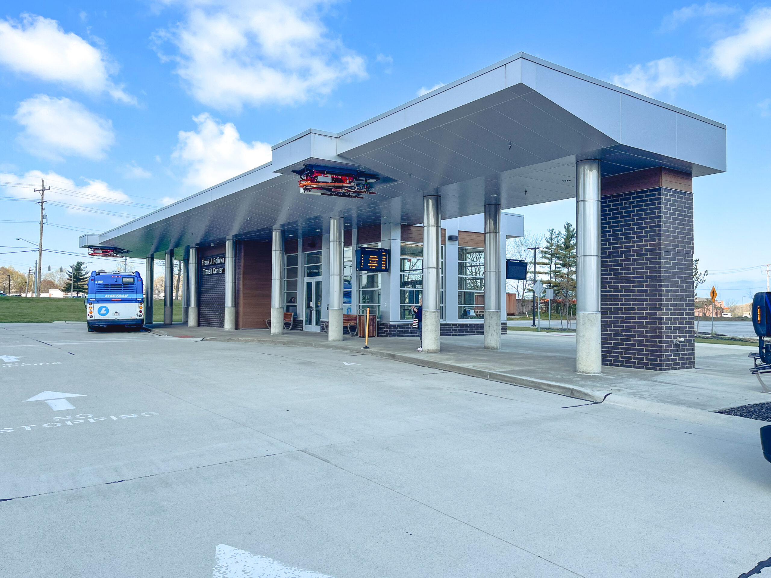 The Frank J. Polivka Transit Center sits at the heart of six local bus routes for Lake County, Ohio’s public transportation system. The center also serves as a bus stop for the Lakeland Community College’s campus shuttle services—making this stop an added benefit to the community.